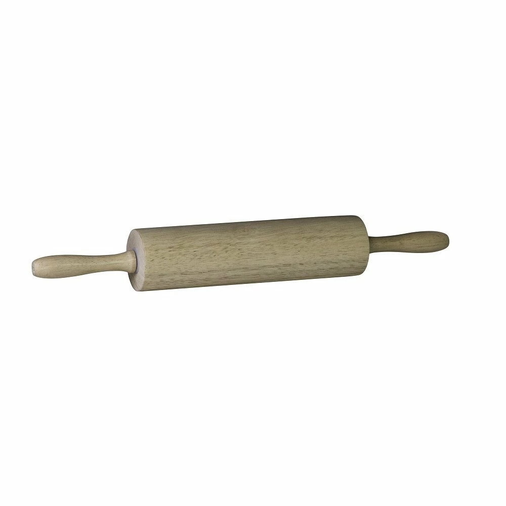 Made of durable rubberwood. This rolling pin is well ballanced, with a heavy cylinder mounted on a steel rod and nylon bushings for smooth, independant turning between the two handles.