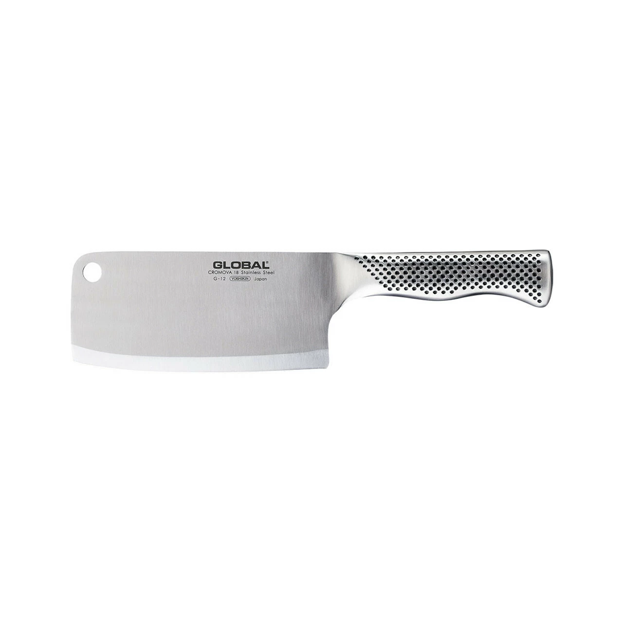 GLOBAL knives are supposed to be refined, delicate instruments for preparing food to exact specifications…. not the G-2 16cm Meat Chopper! It has one real purpose, to smash through bones and cut up large portions of meat. The GLOBAL meat chopper features a thicker steel than ordinary G series knives to handle the repeated blows of going through bone.