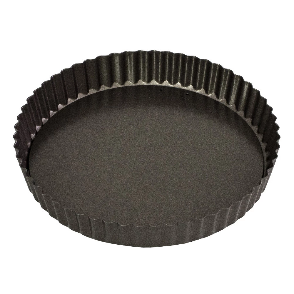 A heavy duty fluted round tin ideal for making quiches, tarts and flans.