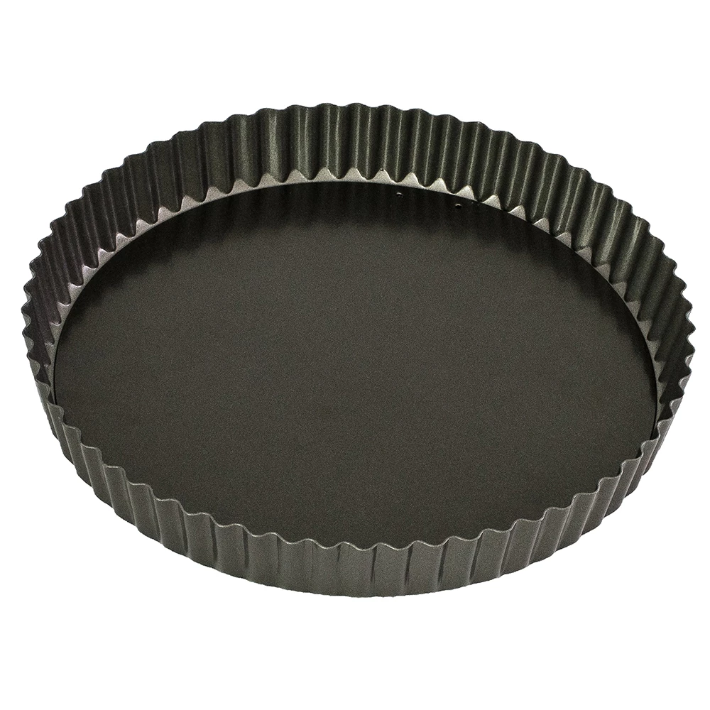 A heavy duty fluted round tin ideal for making quiches, tarts and flans.