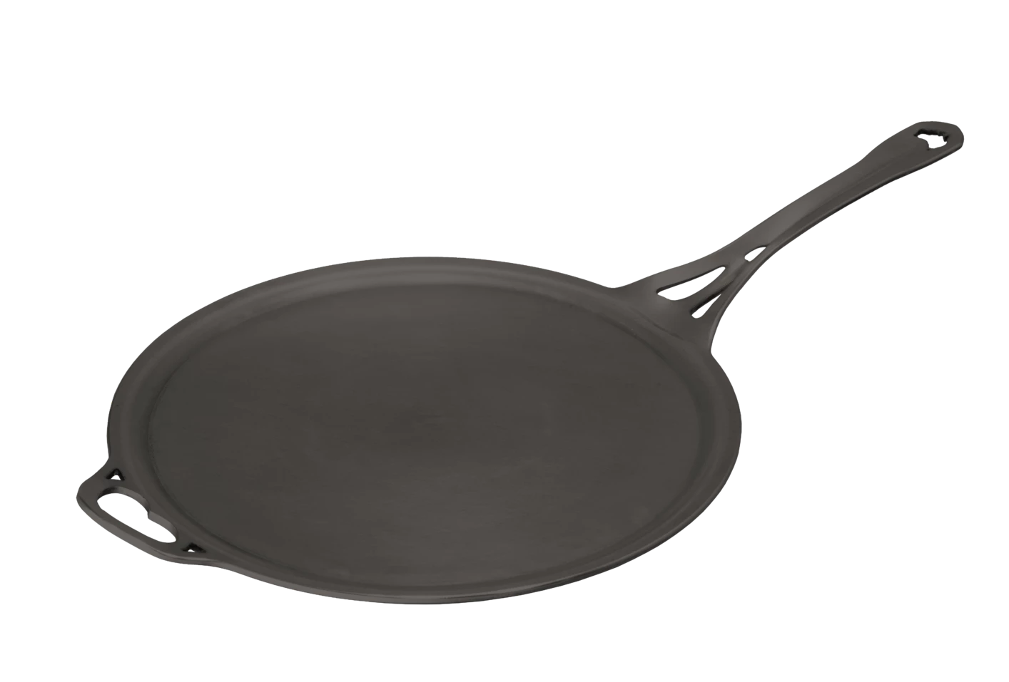 Our AUS-ION™ is a stand-alone crêpe pan in the French tradition, or an exceptional low-sided flat griddle/skillet in the American tradition. A high-performance skillet that is also designed as a matching lid to our . Wrought from solid 4mm thick iron for ultimate durability and even heating.