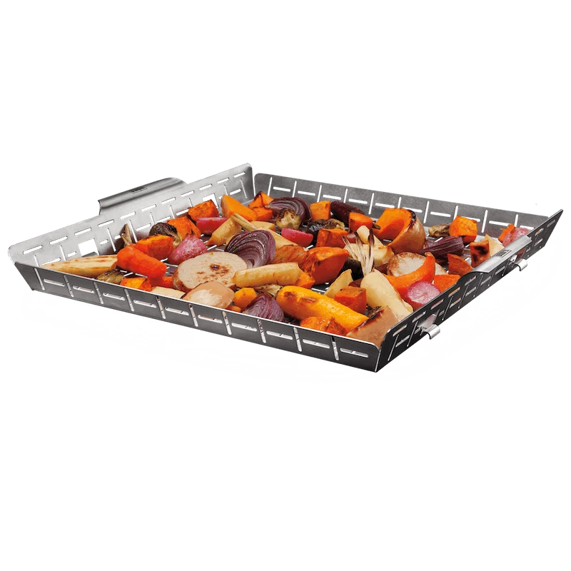Bring your kitchen outside, and create food never thought possible in your barbecue, with the WEBER CRAFTED Outdoor Kitchen Collection. Simply replace your right-side cooking grill with the WEBER CRAFTED Grilling Basket to perfectly caramelize veggies, delicate seafood, and smaller pieces of meat. WEBER CRAFTED compatible barbecue, frame, and cooking grills required for use. ​Â